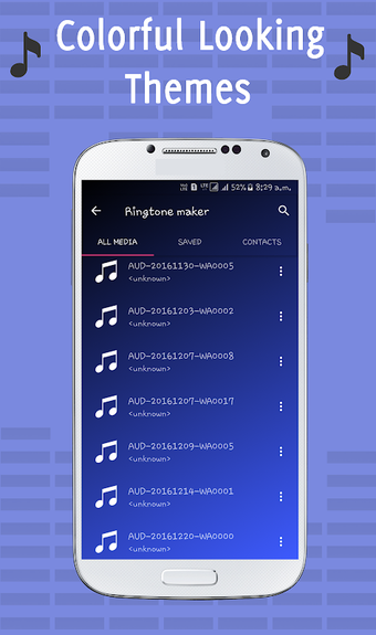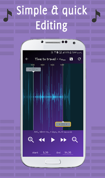 هذا التطبيق بسيط جدا وسهل الاستخدام. يمكنك اختيار قص ملف mp3 بأكمله أو تحديد جزء منه فقط. يمكنك حفظ ملفات mp3 المقطوعة في مكتبة الموسيقى بهاتفك أو قائمة جهات الاتصال أو قائمة الرسائل أو قائمة الإشعارات.